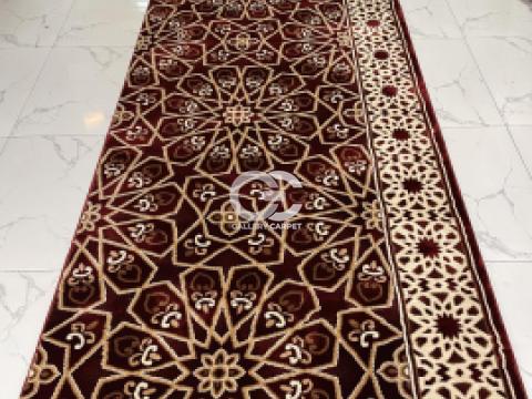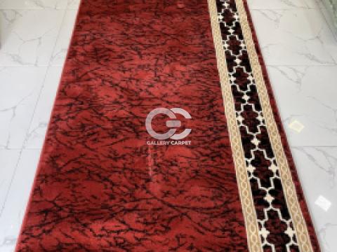 Karpet Sajadah Masjid Meteran merk New Royal Tabriz warna merah motif bunga tabur.